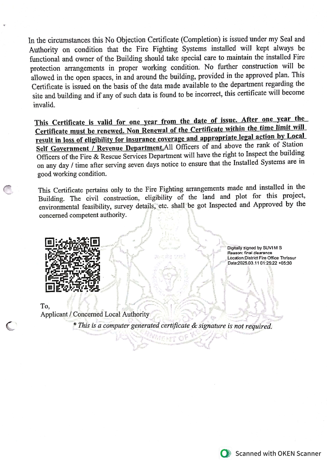 Fire & Safety Certificate